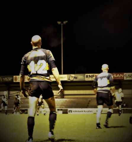 (24:10). Danach überschlugen sich die Ereignisse und es entwickelte sich eine hitzige Partie: zuerst bekam die RGH eine weitere gelbe Karte für einen Spieler. Nach einem weiteren Stuttgarter Versuch durch Bernd Gahr (24:15), nahmen die Unsauberkeiten und Nickligkeiten in der Partie zu. Ein weiterer RGH Spieler erhielt eine rote Karte, sodass nur noch 13 gegen 15 Mann spielten. Eine gefundene Einladung! Doch die Stuttgarter konnten die Überzahl nicht nutzen und erhielten kurz danach selbst zwei gelbe Karten. Somit waren die Mannschaftsstärken wieder ausgeglichen.